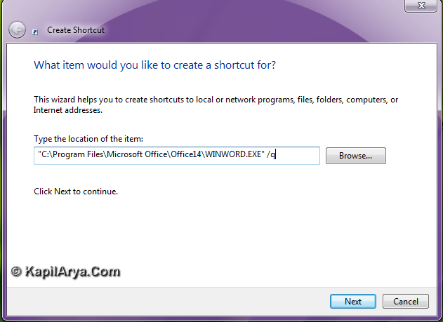 “C:\Program Files\Microsoft Office\Office14\WINWORD.EXE” /q