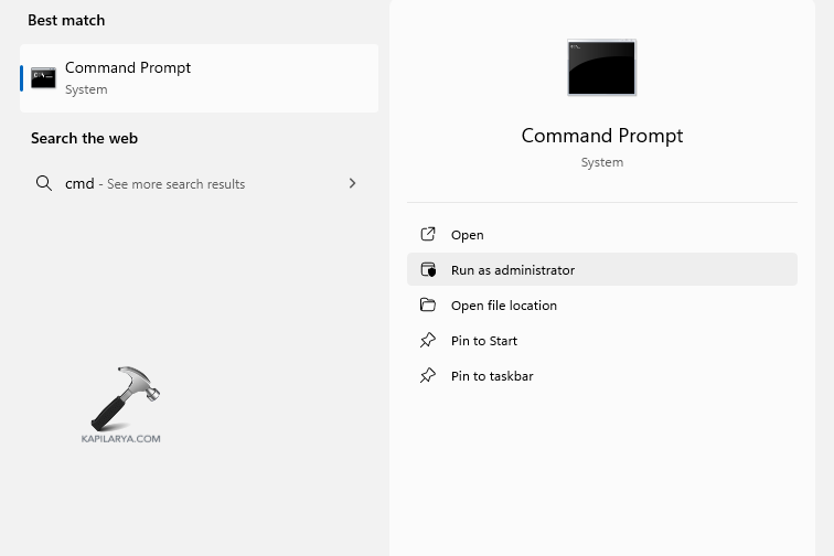 1. For this, press Windows + S, write cmd. Then, right-click Command Prompt and choose Run as administrator.