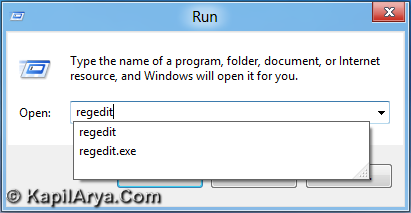 1. Press Windows Key + R and put regedit in Run dialog box to open Registry Editor (if you’re not familiar with Registry Editor, then click here). Click OK.