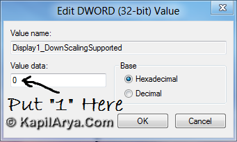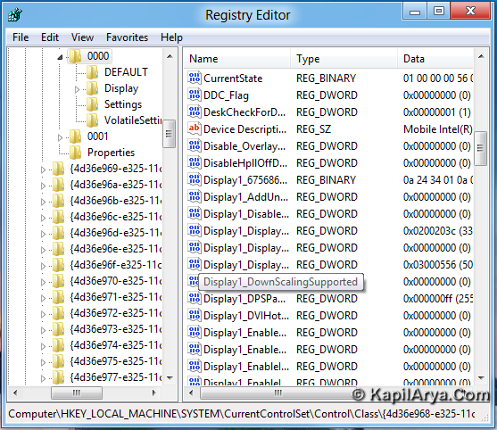 3. In the right pane, look for DWORD named Display1_DownScalingSupported, it must have default value 0.